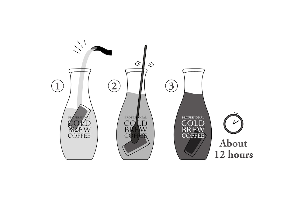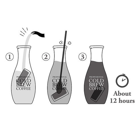コーヒーバックを水に浸すだけ。冷蔵庫に入れ、約12時間後には水出しアイスコーヒーが完成します。