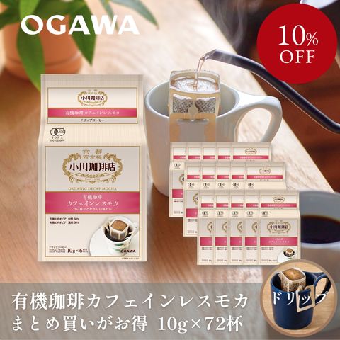 【まとめ買い】【定価10,104円→9,093円】有機珈琲カフェインレスモカ ドリップコーヒー6杯分 12個|公式小川珈琲 デカフェ 個包装 有機栽培 オーガニック
