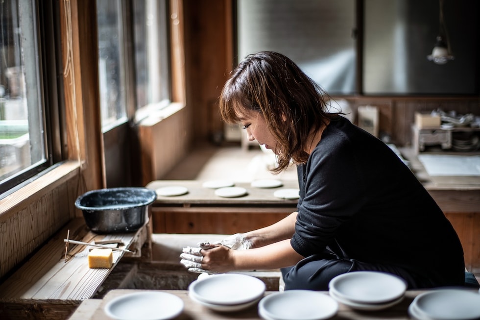 京都で百年を超える歴史を持つ紅村窯。代々受け継ぐのは西施白磁と青磁のうつわ。紅村の伝統の中から新しく四代目 林侑子が作り上げた作品は和菓子の伝統技法”はさみ菊”に魅了されて生まれた土鋏(つちばさみ)。