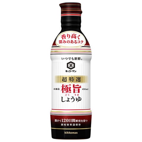 キッコーマン いつでも新鮮 超特選 極旨しょうゆ 450mlペットボトル×12本入| 送料無料 生しょうゆ 密封 ecoボトル こいくちしょうゆ 濃口?油