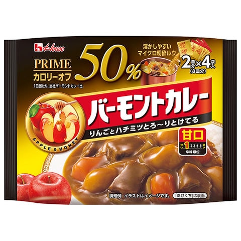 でんぷん(国内製造)、砂糖、食塩、植物油脂、カレーパウダー、脱脂大豆、食物繊維(難消化性デキストリン)、オニオンパウダー、粉末ソース、チーズ加工品、ガーリックパウダー、はちみつ、粉乳小麦粉ルウ、チーズパウダー、ポークエキス、トマトパウダー、粉末油脂、焙煎香辛料ペースト、玉ねぎ加工品、トマト調味料、粉末みそ、濃縮トマト、酵母エキス、香辛料、玉ねぎエキス、コリアンダー加工品、チキンエキス、りんご濃縮果汁、りんごペースト、ソテー野菜ペースト、たん白加水分解物、ローストオニオンパウダー、かつおぶし粉末、ローストガーリックパウダー、粉末しょう油、フライドジンジャー、乳たん白加工品、ココナッツミルクパウダー/調味料(アミノ酸等)、着色料(カラメル、パプリカ色素)、乳化剤、香料、酸味料、香辛料抽出物、甘味料(スクラロース)、(一部に乳成分・小麦・大豆・鶏肉・豚肉・りんごを含む)