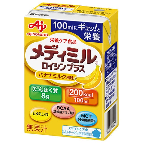 味の素 メディミル ロイシンプラス バナナミルク風味 100ml紙パック×15本入×(2ケース)| 送料無料 栄養 アミノ酸 スマイルケア食