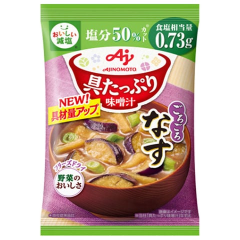 味の素 具たっぷり味噌汁 なす 減塩 13.2g×8袋入×(2ケース)| 送料無料 インスタント 即席 味噌汁 みそ汁 フリーズドライ