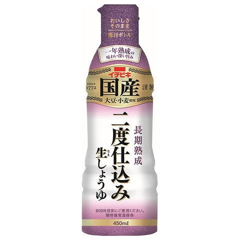 イチビキ 国産 二度仕込み生しょうゆ 450ml×8本入×(2ケース)| 送料無料 調味料 密封ボトル 醤油 しょうゆ 再仕込み醤油