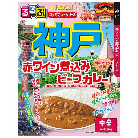 ハチ食品 るるぶ×Hachiコラボカレーシリーズ 神戸 赤ワイン煮込みビーフカレー 180g×20個入| 送料無料 一般食品 レトルト カレー 中辛 神戸