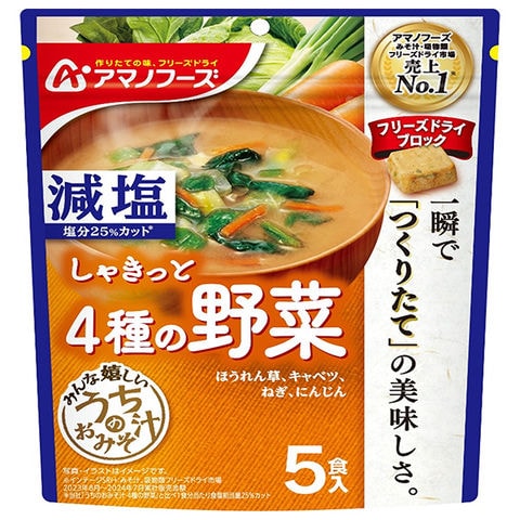アマノフーズ フリーズドライ 減塩うちのおみそ汁 4種の野菜 5食×6袋入| 送料無料 フリーズドライ インスタント食品 味噌汁 袋