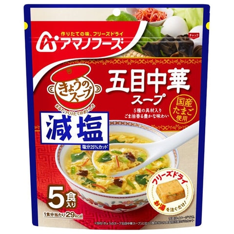 アマノフーズ フリーズドライ 減塩きょうのスープ 五目中華スープ 5食×6袋入×(2ケース)| 送料無料 フリーズドライ インスタント食品 スープ 袋