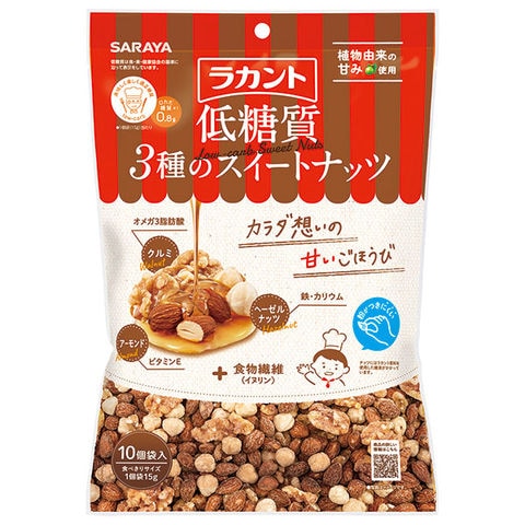サラヤ ラカント 低糖質 3種のスイートナッツ 150g(15g×10)×10袋入| 送料無料 お菓子 ミックスナッツ 糖質制限 おやつ おつまみ