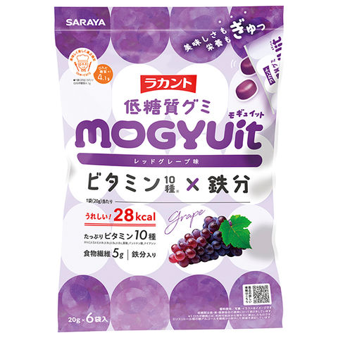 サラヤ ラカント低糖質グミ MOGYUit レッドグレープ味 120g(20g×6袋)×10袋入| 送料無料 お菓子 グミ 葡萄 グレープ