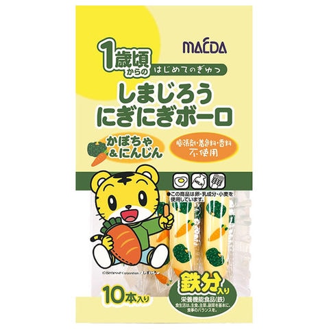 大阪前田製菓 しまじろうにぎにぎボーロ かぼちゃ&にんじん 10本×12袋入×(2ケース)| 送料無料 お菓子 焼菓子 おやつ ボーロ スティック つかみ食べ カルシウム