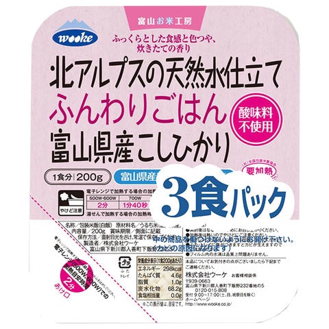 ウーケ 北アルプスの天然水仕立て ふんわりごはん 富山県産こしひかり (200g×3P)×8袋入| 送料無料 ごはん(レトルト) レトルトご飯 パックご飯 ごはん