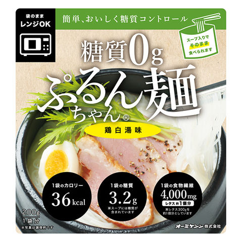 オーミケンシ 糖質0g ぷるんちゃん麺 鶏白湯味 200g×12袋入| 送料無料 レトルト 即席 ダイエット食品 白湯