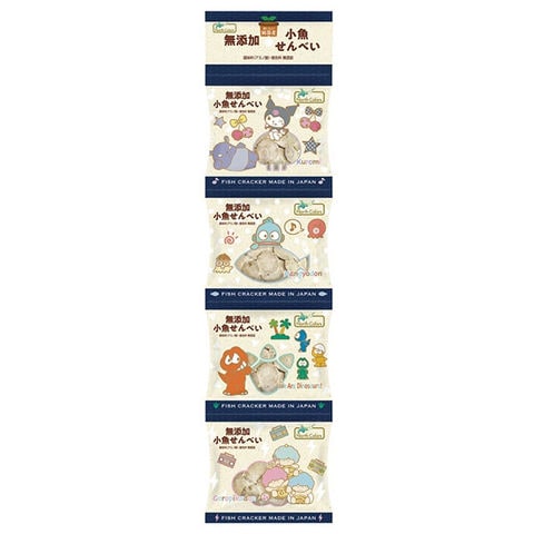 じゃがいもでんぷん(じゃがいも(北海道産、遺伝子組換えでない))、いりこ煮干し(いわし(国産))、煮干しいわし粉末(いわし(国産))、食塩(国内製造)、こめ油(米(国産))、含蜜糖(てん菜(北海道産、遺伝子組換えでない))、えび粉(えび(国産))