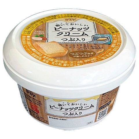 食用油脂(国内製造)(加工油脂、植物油脂)、ピーナッツバター、糖類(砂糖、ぶどう糖、粉末水あめ)、ピーナッツ、脱脂粉乳、食塩/乳化剤、酸化防止剤(V.C)、香料、(一部に乳成分・落花生・ごま・大豆を含む)