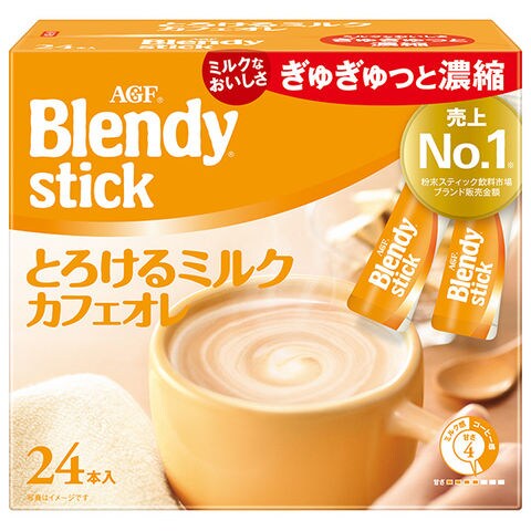 AGF ブレンディ スティック とろけるミルクカフェオレ (9.3g×24本)×6箱入| 送料無料 インスタント スティックコーヒー