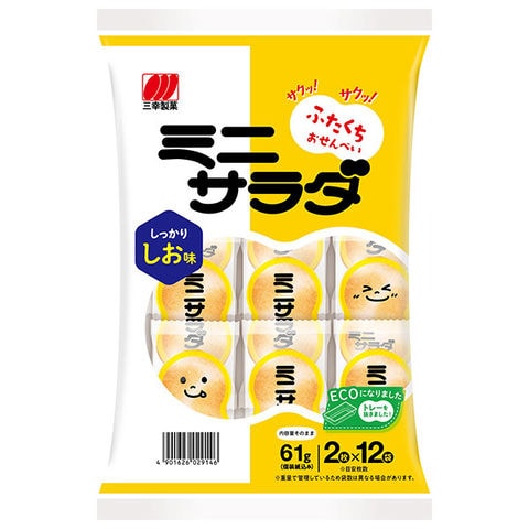 三幸製菓 ミニサラダ しお味 61g×16袋入| 送料無料 お菓子 おつまみ せんべい 袋 小分け ソフト 煎餅 塩 しお