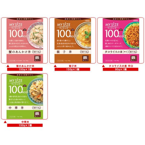 【マイサイズ 欧風カレー【中辛】】150g×1個、【マイサイズ バターチキンカレー【中辛】】120g×1個、【マイサイズ グリーンカレー【辛口】】150g×1個、【マイサイズ キーマカレー 中辛】100g×1個、【マイサイズ ハヤシ】150g×1個、【マイサイズ チーズリゾットの素】86g×1個、【マイサイズ 蟹のあんかけ丼】150g×1個、【マイサイズ 親子丼】150g×1個、【マイサイズ タコライスの素 辛口】90g×1個、【マイサイズ 中華丼】150g×1個
