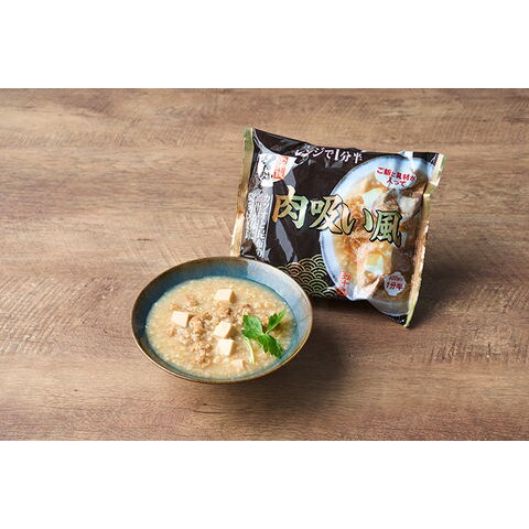 精米(国産)、牛肉、豆腐、しょうゆ、ねぎ、かつおだし、煮干だし、醸造調味料、昆布だし、さば節だし、食塩、おろしにんにく/増粘剤(加工でん粉)、調味料(アミノ酸)、酸化防止剤(抽出V.E.)、豆腐用凝固剤、(一部に小麦・牛肉・さば・大豆を含む)