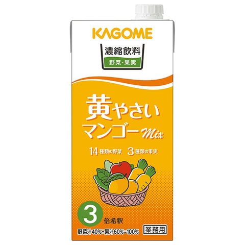 カゴメ 濃縮飲料 黄やさい・マンゴーミックス(3倍希釈) 1L紙パック×6本入×(2ケース)| 送料無料 野菜 野菜ミックス 野菜ジュース 業務用
