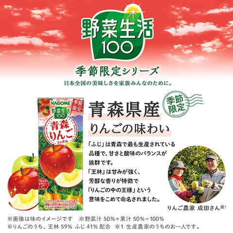 カゴメ 野菜生活100 青森りんごミックス 195ml紙パック×24本入×(2ケース)| 送料無料 野菜ジュース アップル りんご ミックスジュース