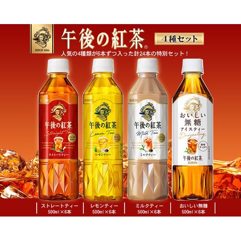 キリン 午後の紅茶 4種詰め合わせセット 500mlペットボトル×24(4種×6)本入| 送料無料 紅茶 レモンティー ミルクティー ストレートティー 無糖