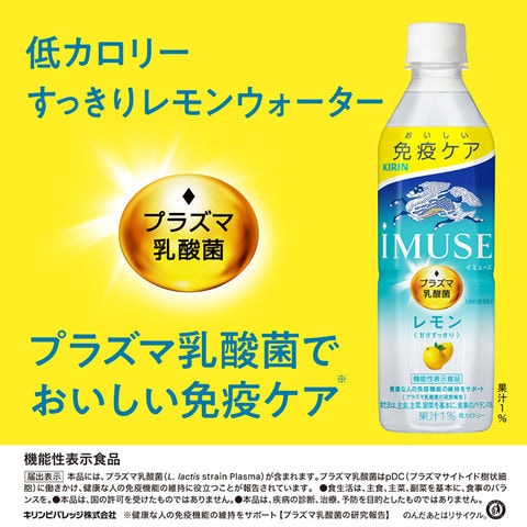 キリン iMUSE(イミューズ) レモン 500mlペットボトル×24本入×(2ケース)| 送料無料 機能性表示食品 プラズマ乳酸菌 免疫ケア