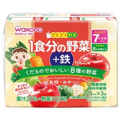 和光堂 ごくごく野菜 1食分の野菜+鉄 りんご味 (125ml紙パック×3P)×8(4×2)個入| 送料無料 子ども向け 野菜ジュース 鉄分 りんご味
