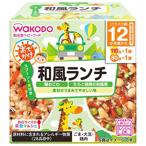 和光堂 BIGサイズの栄養マルシェ おでかけ和風ランチ 190g(110g+80g)×24個入×(2ケース)| 送料無料 ベビーフード お弁当 ランチ おこわ 鶏肉 根菜