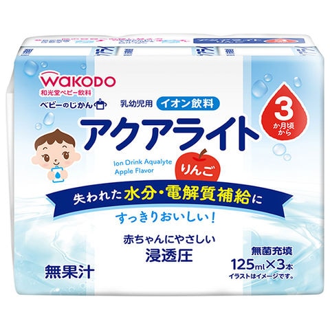 和光堂 ベビーのじかん アクアライト りんご (125ml紙パック×3P)×8(4×2)本入| 送料無料 ベビー飲料 赤ちゃん イオン飲料 水分補給