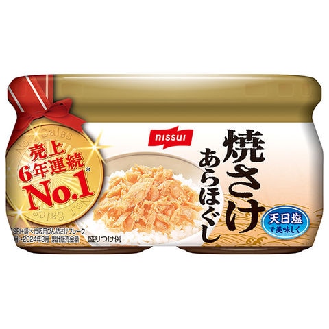 ニッスイ 焼さけあらほぐし 2個パック (48g瓶×2)×12個入| 送料無料 一般食品 調味料 ふりかけ ビン 鮭
