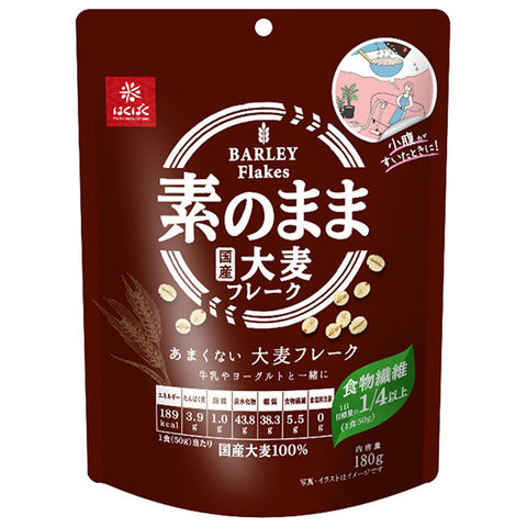 はくばく あまくない大麦フレーク 180g×6袋入×(2ケース)| 送料無料 一般食品 大麦 袋 フレーク