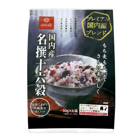 はくばく 国内産名撰十六穀 180g(30g×6)×6袋入×(2ケース)| 送料無料 もち麦 十六穀 玄米 押麦