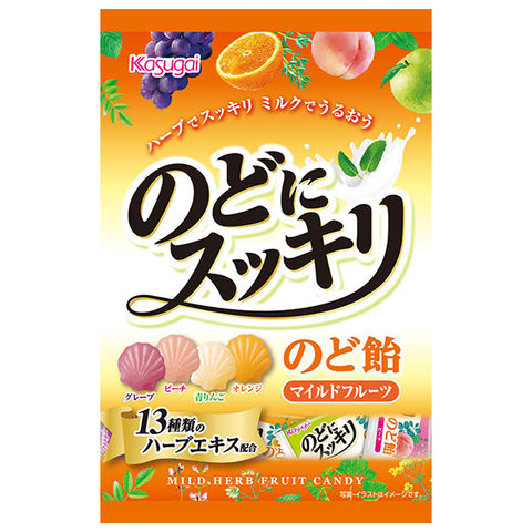 春日井製菓 のどにスッキリマイルドフルーツ 118g×12袋入 メーカー 問屋直送| 送料無料 お菓子 飴・キャンディー 袋 のど飴 ハーブエキス配合