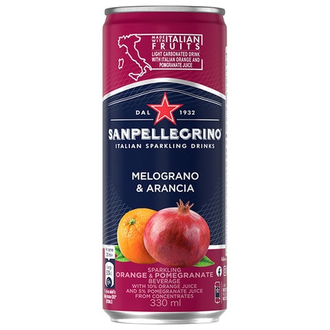 日仏貿易 サンペレグリノ メログラーノアランチャ(ザクロ&オレンジ) 330ml缶×24本入×(2ケース)| 送料無料 炭酸 果実飲料 フルーツ 缶 オレンジ ザクロ