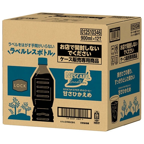 ネスレ日本 ネスカフェ エクセラ ボトルコーヒー 甘さひかえめ ラベルレス 900mlペットボトル×12本入×(2ケース)| 送料無料 アイスコーヒー 微糖