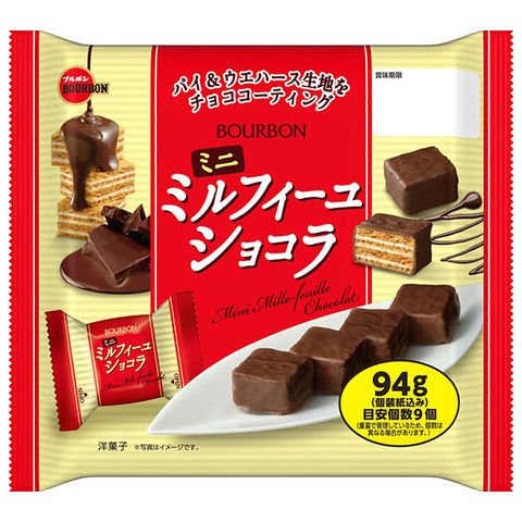 ブルボン ミニミルフィーユショコラ 99g×12袋入| 送料無料 ミニ ミルフィーユ ショコラ チョコ パイ ウエハース バニラ クリーム お菓子 スイーツ 個包装