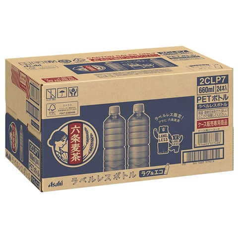 アサヒ飲料 六条麦茶 ラベルレスボトル 660mlペットボトル×24本入×(2ケース)| 送料無料 むぎ茶 麦茶 お茶 ノンカフェイン カフェインゼロ エコ