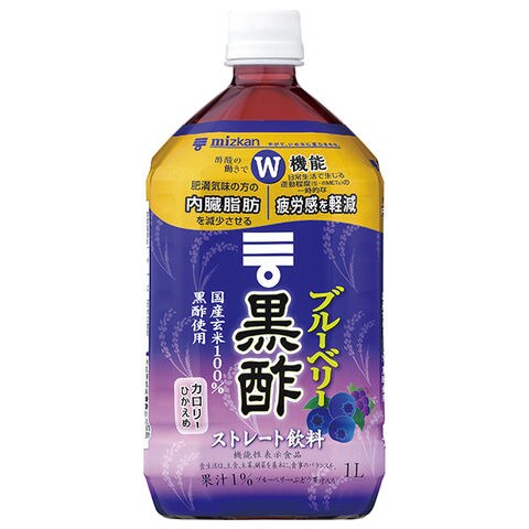 ミツカン ブルーベリー黒酢 ストレート【機能性表示食品】 1Lペットボトル×12本入×(2ケース)| 送料無料 MIZKAN 黒酢 健康酢 酢飲料 お酢 1000ml 1l PET