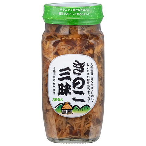 きのこ(えのきたけ、きくらげ、しめじ、しいたけ)、しょうゆ(小麦・大豆を含む)、砂糖、食塩/調味料(アミノ酸等)、クエン酸、増粘多糖類、酸化防止剤(ビタミンC)