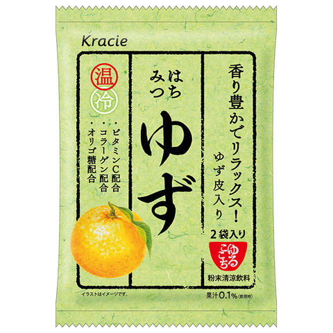 砂糖(国内製造)、イソマルトオリゴ糖、ゆず果汁パウダー、ゆず皮、コラーゲンペプチド、はちみつパウダー/酸味料、ビタミンC、増粘多糖類、香料、甘味料(アスパルテーム・L-フェニルアラニン化合物、アセスルファムK)、クチナシ色素、(一部に豚を含む)