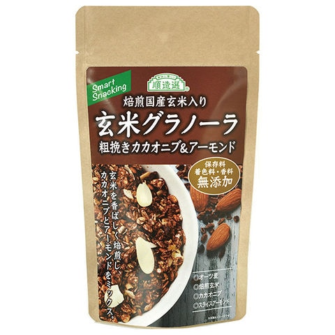 オーツ麦(オーストラリア)、還元麦芽糖水飴、メープルシロップ、米油、焙煎玄米、カカオニブ、スライスアーモンド、ココアパウダー、玄米粉