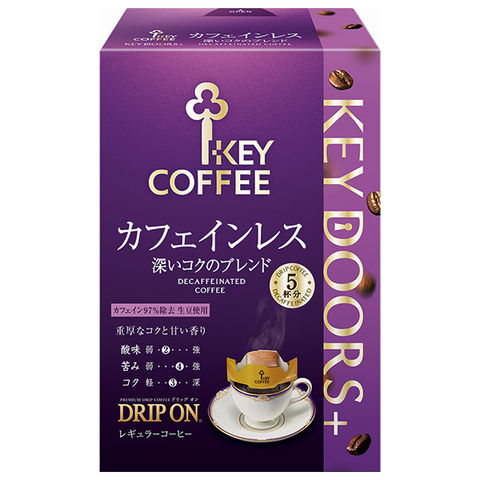 キーコーヒー KEY DOORS+ ドリップ オン カフェインレス 深いコクのブレンド (7.5g×5袋)×5箱入×(2ケース)| 送料無料 ドリップコーヒー 珈琲 カフェインレス