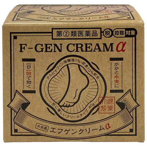 | 商品特徴 | 大源製薬の大人気商品である「水虫薬エフゲンクリーム」がよりパワーアップして、「水虫薬エフゲンクリームα」としてリニューアルしました。 お肌を保湿保護する高濃度な尿素と第三世代の抗真菌薬成分であるテルビナフィン塩酸塩を配合した水虫薬エフゲンクリームαは、角質層の深部に住み着く白癬菌にすみやかに浸透し、患部にとどまって殺菌力を発揮するクリームタイプの水虫薬です。 |