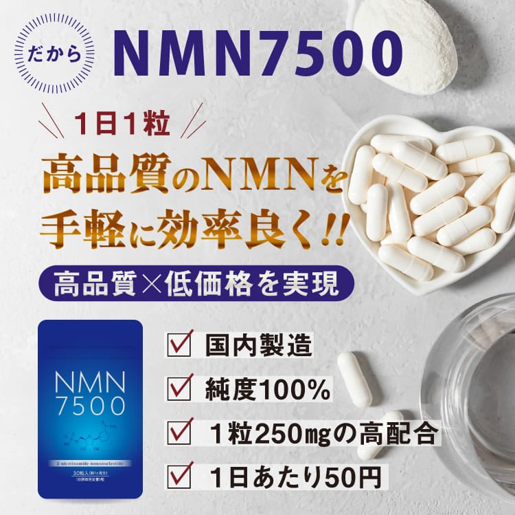 NMN7500 30粒入 メール便送料無料/NMN サプリメント β-NMN 100% 高純度