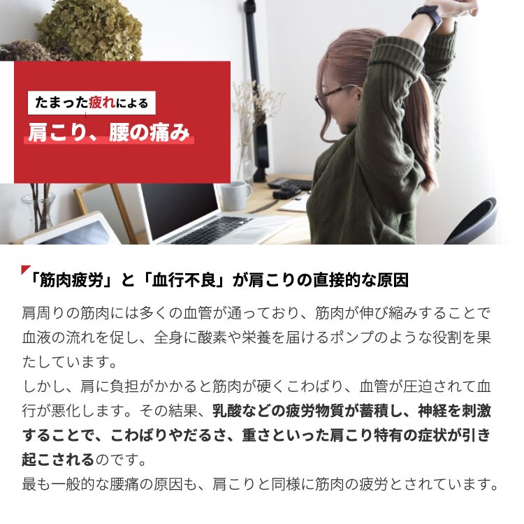 目の疲れ、肩こり、腰の痛みに