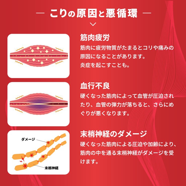 ■次の諸症状の緩和:神経痛、筋肉痛・関節痛(肩・腰・肘・膝痛、肩こり、五十肩など)、手足のしびれ、眼精疲労(慢性的な目の疲れ及びそれに伴う目のかすみ・目の奥の痛み)