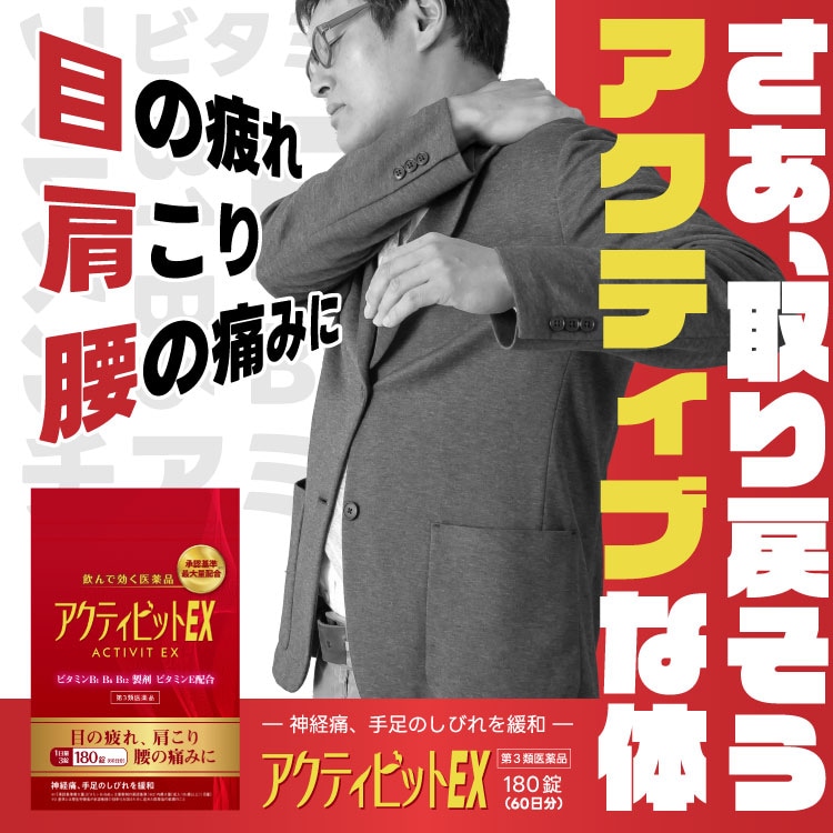 【第3類医薬品】アクティビットEX 180錠 (60日分) メール便送料無料 / フルスルチアミン 目の疲れ 肩こり 腰痛 神経痛