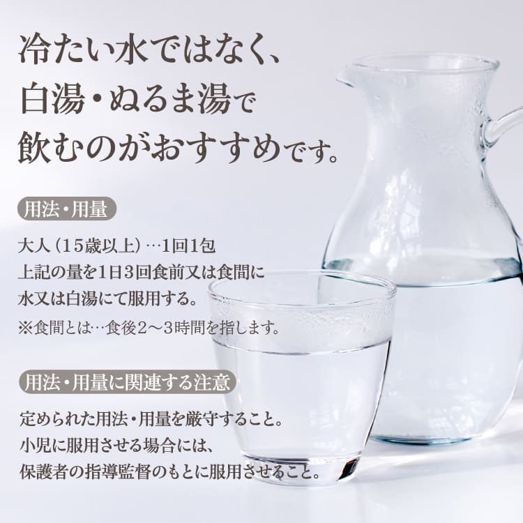 下記の量を食前又は食間に水又は白湯にて服用して下さい。