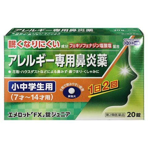 ●エメロット「FX」錠ジュニアは,こども(7才~14才)用のアレルギー専用鼻炎薬です。