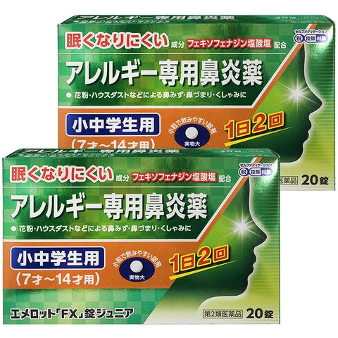 ●エメロット「FX」錠ジュニアは,こども(7才~14才)用のアレルギー専用鼻炎薬です。